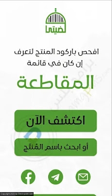 يمكنك من خلال اختيار "اكتشف الأن" لمعرفة ما إذا كان المنتج مقاطع أو لا من خلال مسح الباركود الخاص بالمنتج عبر كاميرا الجوال "الكشف عن المنتجات المقاطعة بالكاميرا".