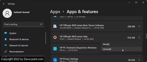 قم بإزالة برنامج طابعة HP في تطبيق إعدادات Windows 11