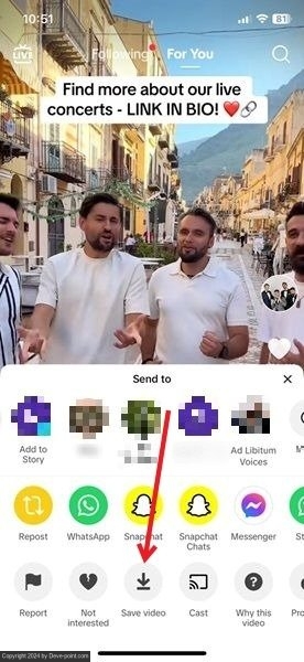 يمكنك تنزيل مقاطع فيديو TikTok باستخدام جهاز محمول، مثل هاتف Android أو iPhone مباشرة من التطبيق نفسه.