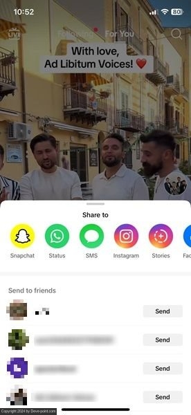 عندما يصل التنزيل إلى 100%، سيكون لديك خيارات المشاركة التالية: Facebook وWhatsApp وSnapchat وInstagram والمزيد. لاحظ أن مقاطع فيديو TikTok تتم مشاركتها كملفات MP4 وليس روابط. يمكنك تجاوز هذا، حيث سيتم حفظ الفيديو الخاص بك على جهازك. على نظام Android، ستتمكن من العثور عليه في تطبيق المعرض ضمن مجلد الكاميرا على نظام Android. على iPhone، يجب أن يصل إلى تطبيق الصور.
