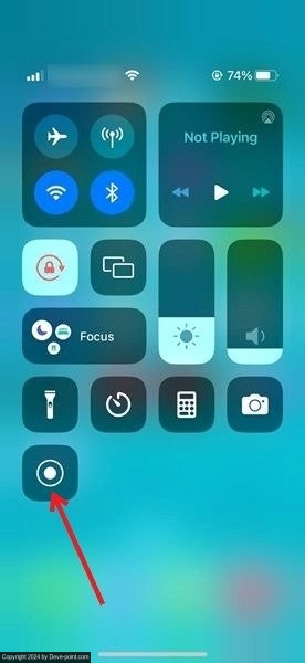 على iPhone، يمكنك العثور على تسجيل مرئي علي الشاشة الخيار عن طريق الفتح مركز التحكم والضغط على تبديل السجل.