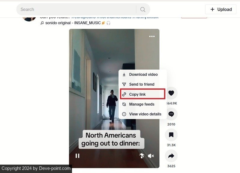 هو خيار آخر.افتح TikTok في متصفح على جهاز الكمبيوتر أو على جهازك المحمول، وابحث عن الفيديو الذي ترغب في تنزيله. على جهاز الكمبيوتر، انقر بزر الماوس الأيمن فوق الفيديو، ثم حدد نسخ الوصلة خيار.