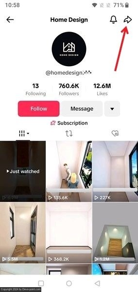 بمجرد وصولك إلى ملفه الشخصي، اضغط على أيقونة المشاركة في الزاوية العلوية اليمنى.