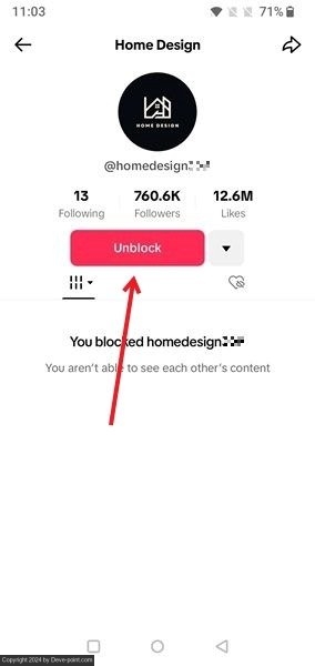 سيتم إعادة تحميل الملف الشخصي للمستخدم المحظور، مما يؤدي إلى إخفاء كل المحتوى عن العرض. يضرب رفع الحظر اذا غيرت رايك.