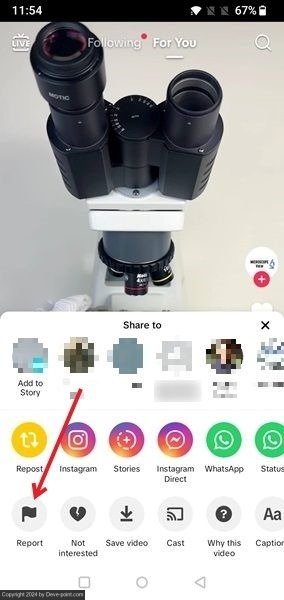 إذا وجدت المقطع مسيئًا حقًا، فأبلغ عنه بالضغط على يشارك الزر الموجود في القائمة على الجانب الأيمن من الفيديو.