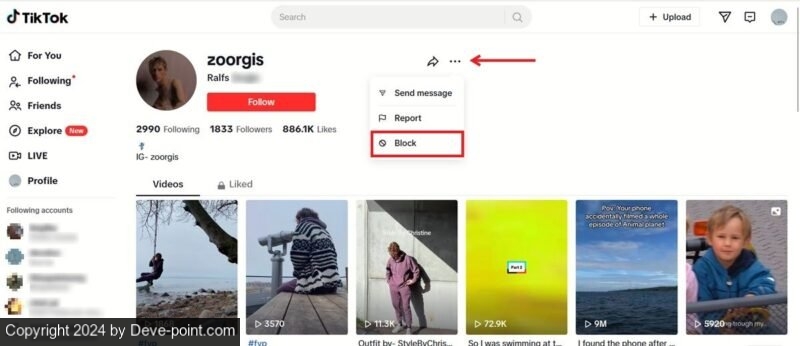 قم بحظر شخص ما على TikTok من خلال الانتقال إلى ملفه الشخصي.