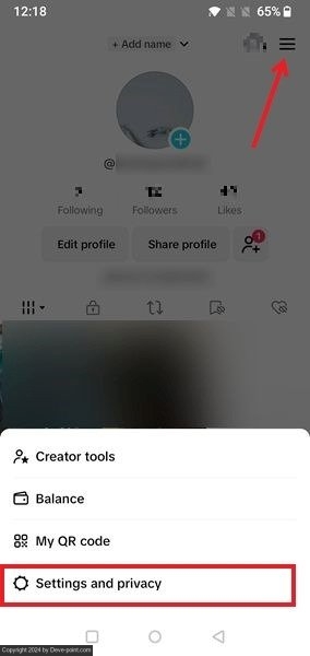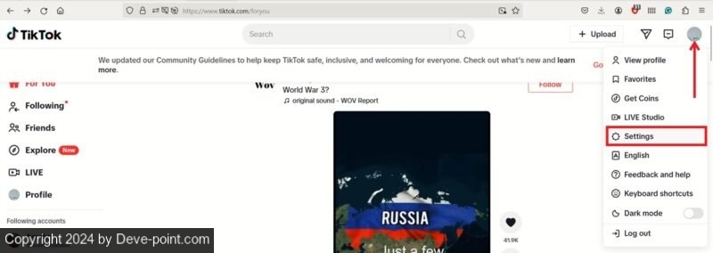 إذا كنت تتصفح TikTok عبر متصفحك على جهاز الكمبيوتر الخاص بك، فسيكون الخيار موجودًا ضمن قائمة مختلفة.