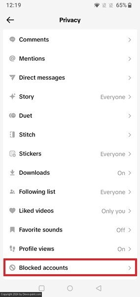 قم بالتمرير إلى الأسفل، ثم اضغط على الحسابات المحظورة.