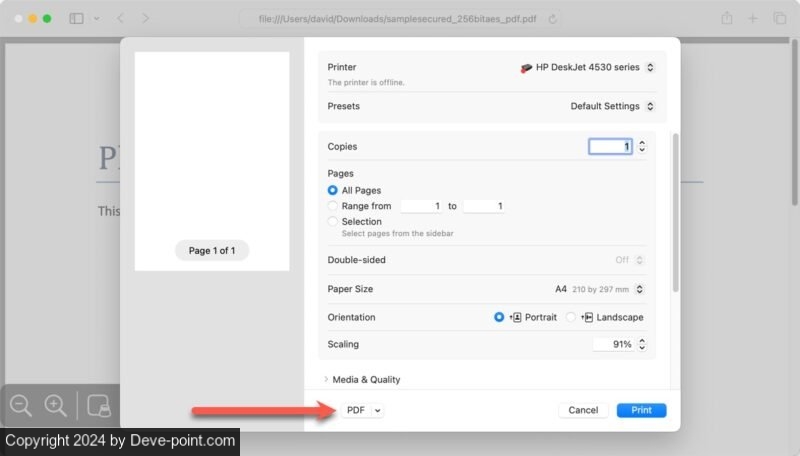تعد إزالة كلمة المرور من ملف PDF باستخدام متصفح الويب الخاص بك حلاً ذكيًا يستخدم ميزة الطباعة إلى PDF المتوفرة في معظم المتصفحات الحديثة، مثل Safari وChrome وFirefox على جهاز Mac الخاص بك. لا تتطلب هذه الطريقة تثبيت برامج إضافية.