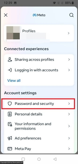 توجه إلى مركز الحسابات -> كلمة المرور والأمان.