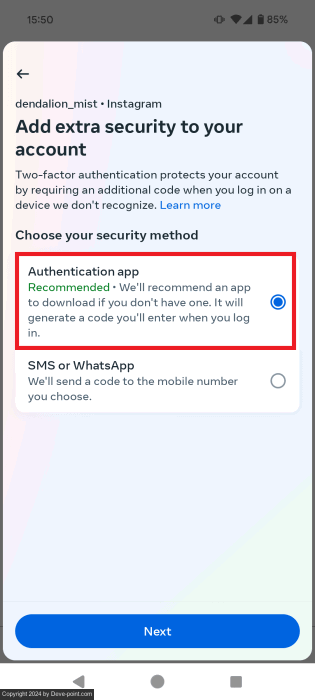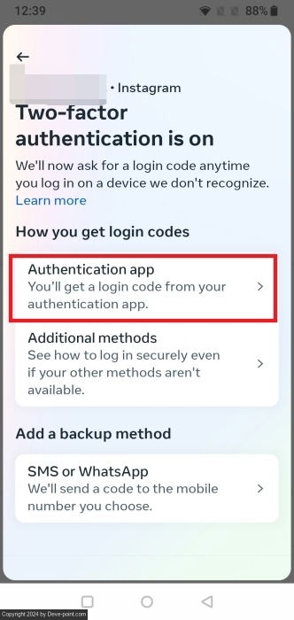 على الجهاز الجديد، تأكد من تثبيت Google Authenticator واستعداده للاستخدام. ستحتاج الآن إلى إعادة تمكين 2FA مرة أخرى في Instagram.