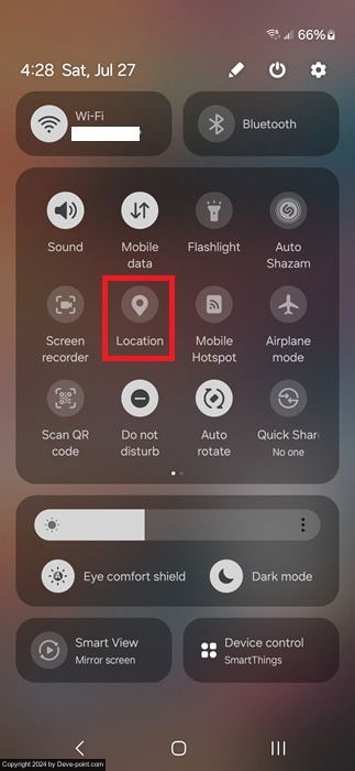 من السهل تشغيل وإيقاف تشغيل ميزة الموقع على نظام Android في ثوانٍ فقط. اسحب شريط الإشعارات الموجود في الجزء العلوي من جهازك. ابحث عن موقعإذا لم تتمكن من رؤيته، اسحب لأسفل مرة أخرى لتوسيع القائمة. انقر فوق موقع لتشغيله/إيقاف تشغيله. إذا لم يكن مميزًا، فسيتم إيقاف تشغيله.