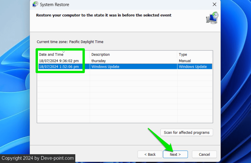 rstrui.exe في مربع الحوار “تشغيل” لفتح “استعادة النظام”.حدد وقت الاستعادة قبل تثبيت الامتداد واتبع الخطوات لاستعادة Windows.