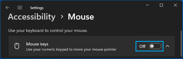 Disable mouse keys windows 11