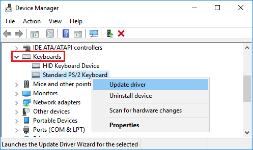 Update keyboard driver device manager windows 10