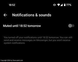 قم بتعطيل التبديل الأول. لاحظ أن Messenger لا يسمح لك بتعطيل الإشعارات من التطبيق بشكل دائم. الحد الأقصى الذي يسمح لك بإسكات الإشعارات هو 24 ساعة.