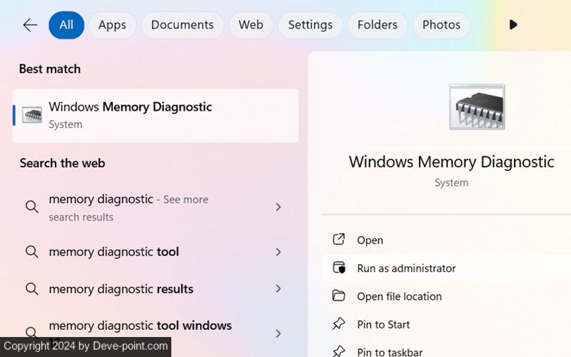 يوفر Windows أداة مدمجة تسمى Windows Memory Diagnostic، والتي توجد داخل مجلد System32. يمكن لهذه الأداة تحديد مشكلات الذاكرة وتقييم أداء ذاكرة الوصول العشوائي (RAM). يمكنك إما فتحها مباشرة من بحث Windows أو عن طريق كتابة