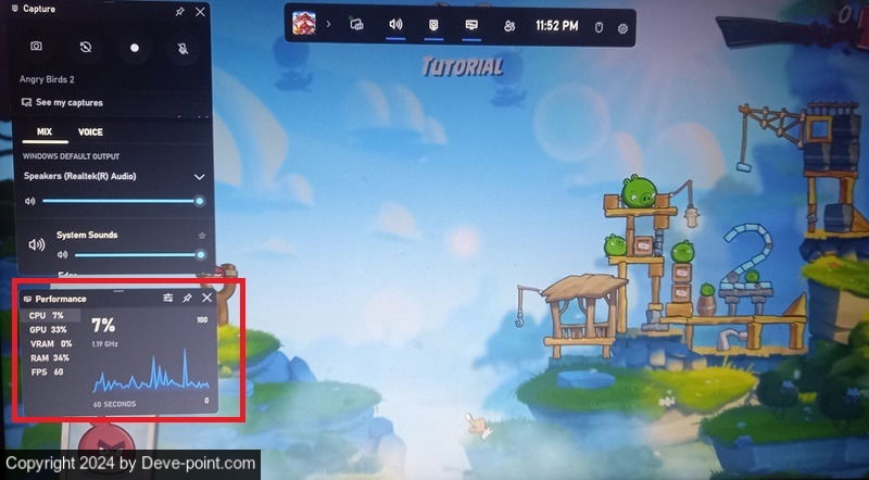 التحقق من أداء ذاكرة الوصول العشوائي (RAM) باستخدام Windows Game Bar