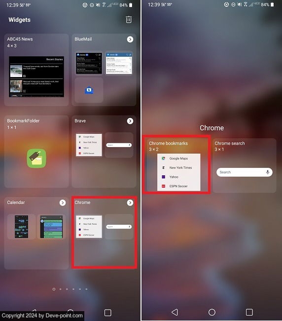 سيؤدي هذا إلى وضع أداة إشارة مرجعية قابلة للتخصيص على الصفحة الرئيسية. وبينما تزعم الأداة أنها بحجم 3×2، يمكنك تعديل الحجم عن طريق النقر على مساحة فارغة في الأداة مرة واحدة، ثم الإمساك بإحدى الزوايا وتحريكها.