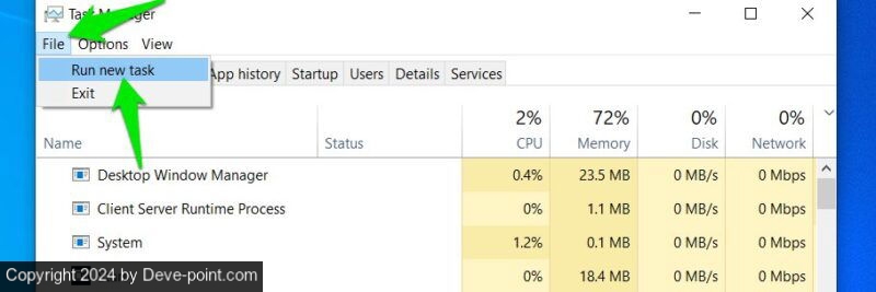 اضغط على ملف القائمة في الأعلى وحدد تشغيل مهمة جديدة خيار.