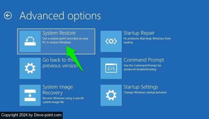 6. افتح استعادة النظام من الوضع الآمن
