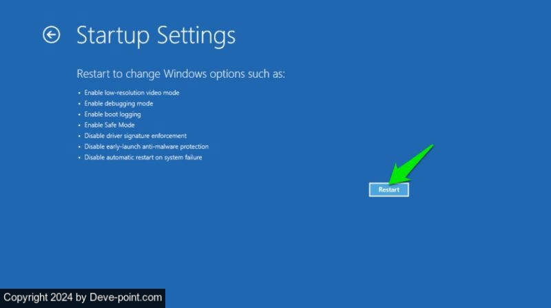 توجد خيارات الوضع الآمن أيضًا في خيارات بدء التشغيل المتقدمة. ما عليك سوى الانتقال إلى استكشاف الاخطاء -> خيارات متقدمة -> بدء التصليح وانقر على إعادة تشغيل الزر هناك.