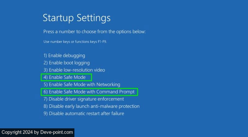 بعد إعادة التشغيل، سيتم فتح قائمة بالخيارات. حدد تمكين الوضع الآمن ثم استخدم مربع الحوار “تشغيل” (الطريقة الأولى) للوصول إلى “استعادة النظام” فيه. إذا كنت تريد تدخلاً أقل، فحدد تمكين الوضع الآمن باستخدام موجه الأوامر بدلا من ذلك وتشغيل
