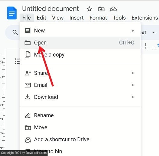 انقر على ملف -> افتح في الزاوية اليسرى العليا.