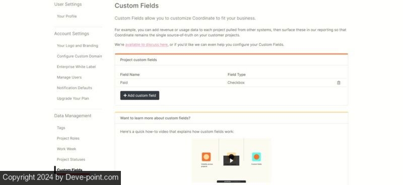 يمكنك الذهاب إلى الإعدادات، ثم النقر فوق الحقول المخصصة تحت إدارة البياناتيمكنك تقديم، على سبيل المثال، مربع الاختيار لمعرفة ما إذا كان المشروع مدفوع الأجر أم لا.
