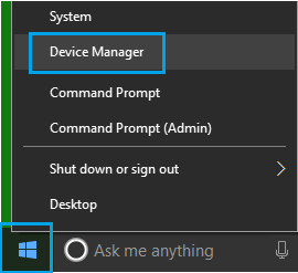 انقر بزر الماوس الأيمن فوق الزر " ابدأ " وانقر فوق "إدارة الأجهزة" .