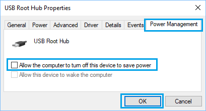 ملاحظة: كرر الخطوات المذكورة أعلاه لجميع إدخالات USB Root Hub.