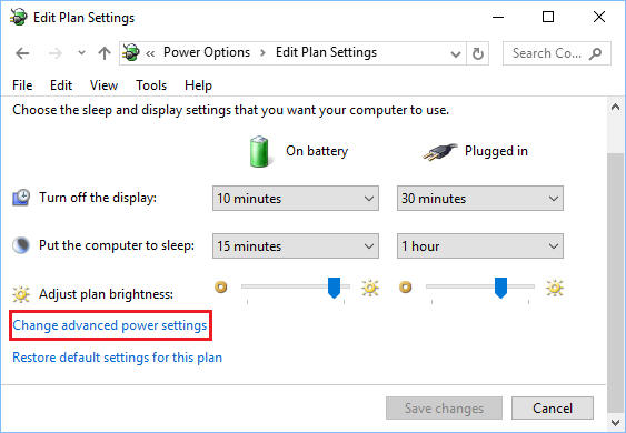 في الشاشة التالية ، حدد الارتباط تغيير إعدادات الطاقة المتقدمة .