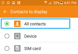 الخطوة الأولى هي التأكد من أن خيار عرض جميع جهات الاتصال نشط وممكّن على هاتف أندرويد الخاص بك.Advertisement