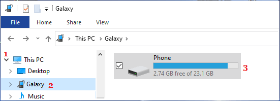 2. في شاشة File Explorer ، قم بتوسيع هذا الكمبيوتر > حدد Android Phone الخاص بك في الجزء الأيمن وانقر نقرًا مزدوجًا فوق Phone في الجزء الأيمن.