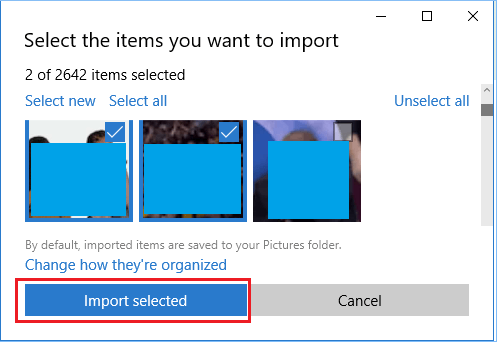 3. بمجرد إدراج الصور ، يمكنك تحديد كل الصور بالنقر فوق "تحديد الكل" أو تحديد الصور الفردية التي تريد نقلها والنقر فوق الزر " استيراد المحدد " .