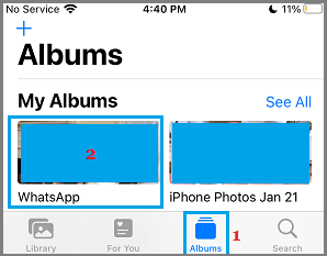 افتح تطبيق الصور > انقر فوق علامة التبويب الألبومات في القائمة السفلية> حدد موقع مجلد WhatsApp وافتحه من خلال النقر عليه.