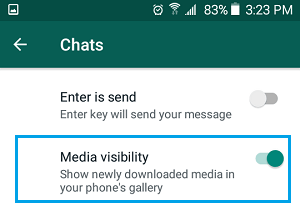 في شاشة الدردشات ، حرك شريط التمرير الموجود بجوار رؤية الوسائط إلى وضع التشغيل .