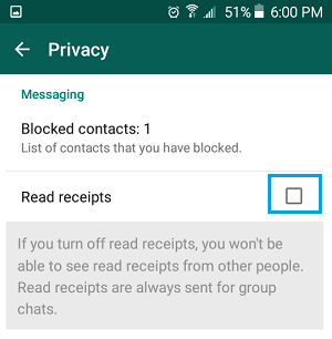 العيب الوحيد لهذه الطريقة هو أنك لن تتمكن من الحصول على إعلامات القراءة من الآخرين ، طالما تم تعطيل إيصالات القراءة في حساب WhatsApp الخاص بك.