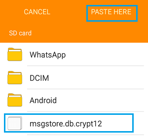ومع ذلك ، يمكن استخدام ملف النسخ الاحتياطي لاستعادة محادثات WhatsApp على هاتفك عن طريق نقل الملف إلى الهاتف (التخزين أو بطاقة SD) وإعادة