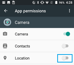 5. في شاشة أذونات التطبيق ، حرك مفتاح التبديل بجوار الموقع إلى وضع إيقاف التشغيل .
