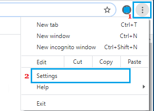 افتح Google Chrome > انقر فوق رمز النقاط الثلاث الموجود في الزاوية العلوية اليمنى وحدد الإعدادات في القائمة المنسدلة.