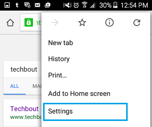 يتوفر خيار تعيين الصفحة الرئيسية أيضًا في تطبيق Chrome على هواتف Android والأجهزة اللوحية.1. افتح متصفح Chrome > انقر على أيقونة ثلاثية النقاط وحدد الإعدادات في القائمة المنسدلة.