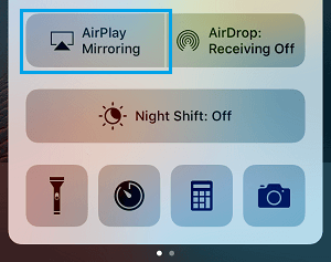 اسحب لأعلى من الأسفل على شاشة iPhone واضغط على خيار AirPlay Mirroring .