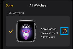اضغط على علامة التبويب My Watch في القائمة السفلية> انقر فوق زر المعلومات ( i ) بجوار Apple Watch التي تريد إزالتها.