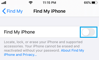 Turn off find my iphone