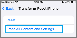 Ntent settings option transfer reset iphone screen