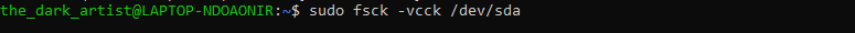 هذا يستبدل / dev / sda بمسار محرك الأقراص الذي تريد إصلاحه. سيكتشف هذا تلقائيًا جميع الكتل السيئة على محرك الأقراص ويميزها على أنها غير صالحة للاستعمال. لن يمنحك أي سعة تخزين إضافية ، لذا كن مستعدًا لتنظيف بعض الملفات غير المفيدة لتحرير مساحة على محرك الأقراص.
