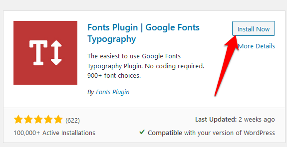 1. اكتب طباعة خطوط Google في مربع البحث ، وحدد التثبيت الآن .
