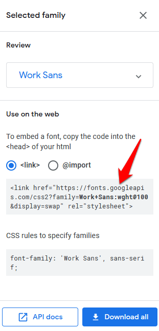 1. انسخ هذا الجزء من الشفرة: [URL unfurl = "true"] https://fonts.googleapis.com/css2؟family=Work+Sans [/ URL]
