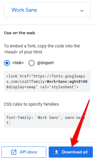 <link href = ”https://fonts.googleapis.com/css2؟family=Work+Sans:wght@100&display=swap” rel = ”stylesheet”>